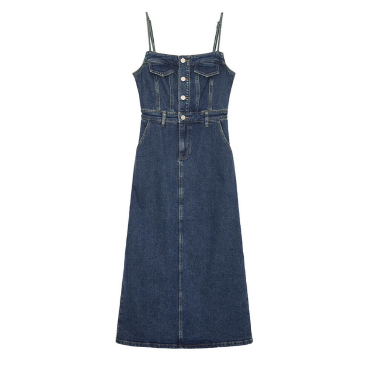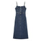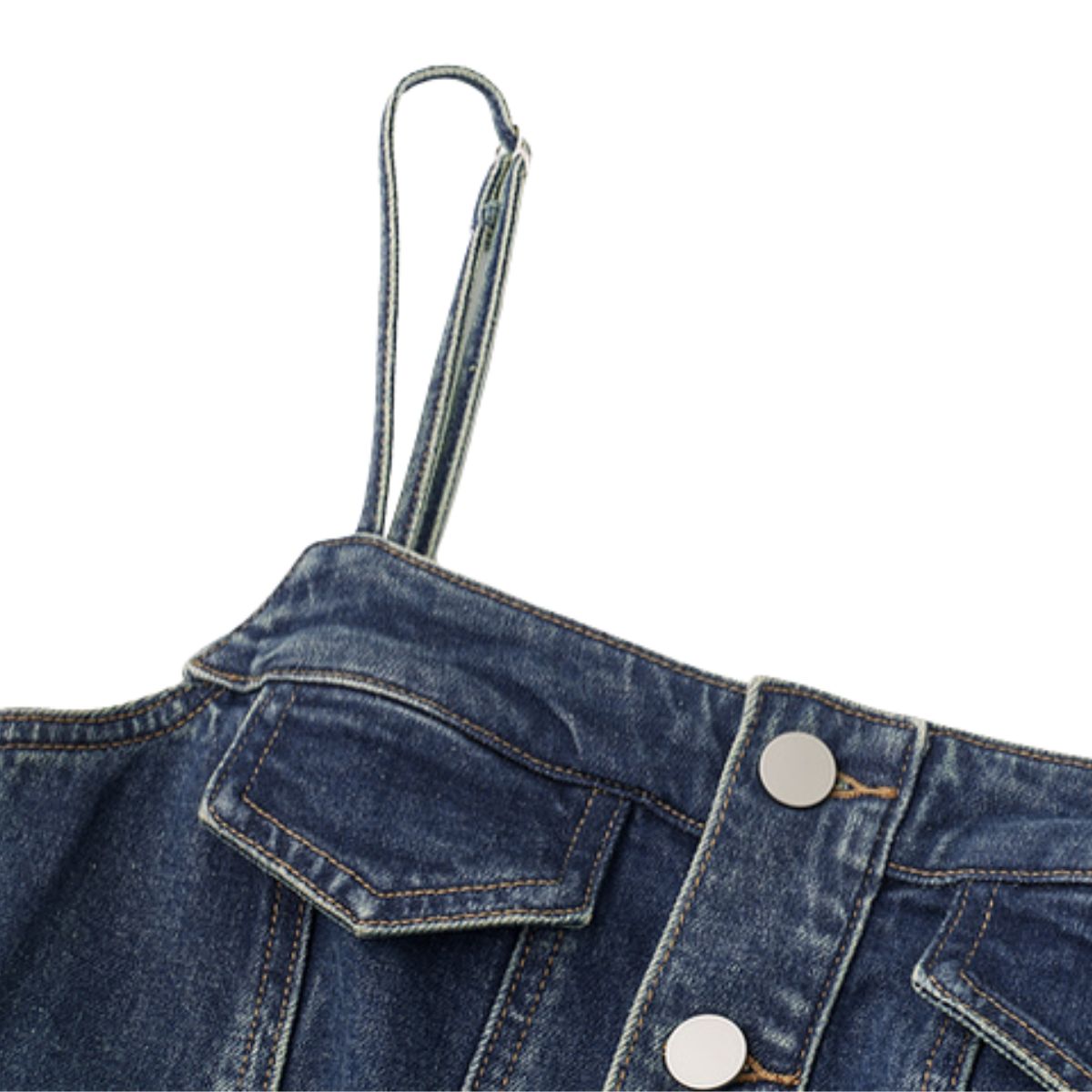 - Bordado artesanal pesado en falda vaquera con bordes sin rematar