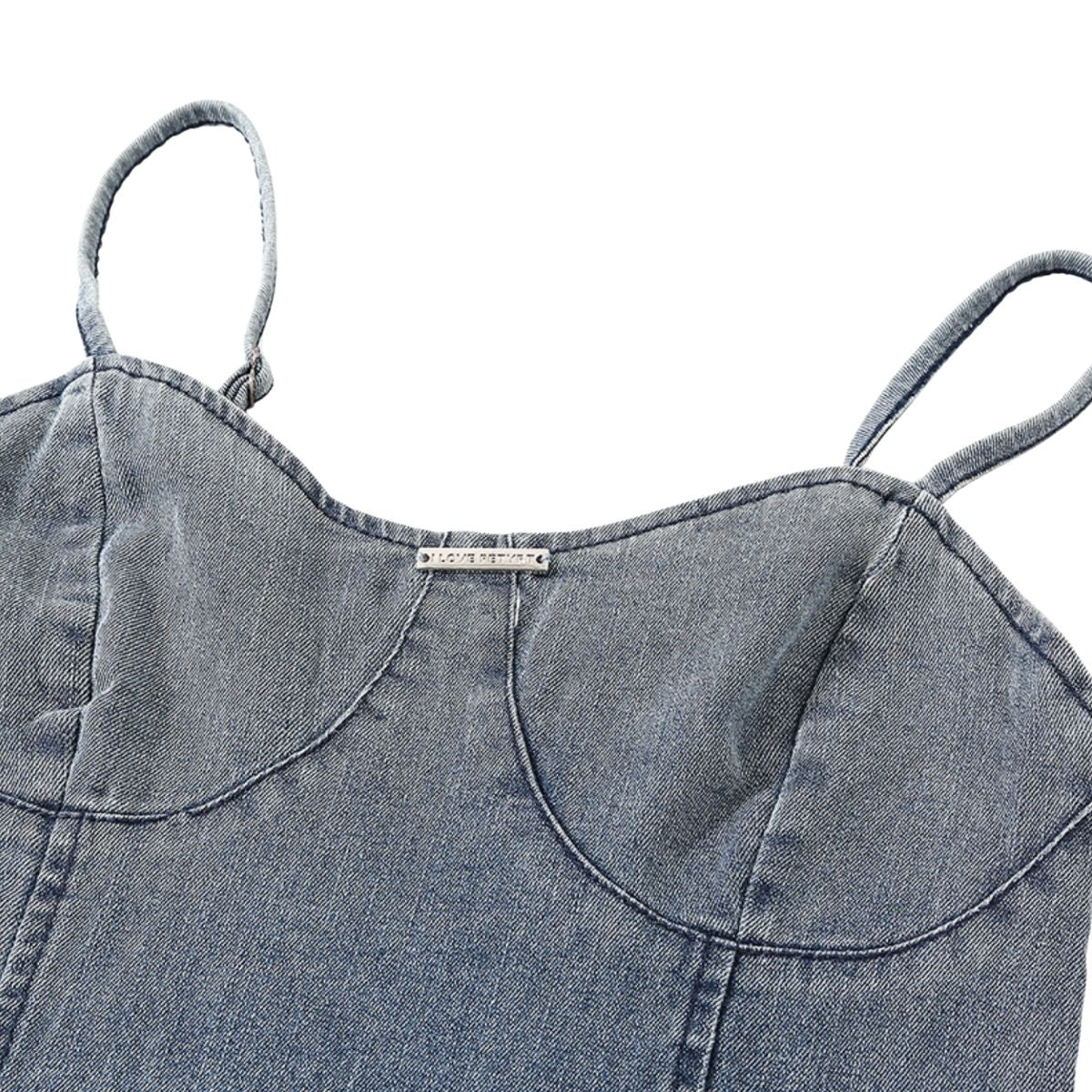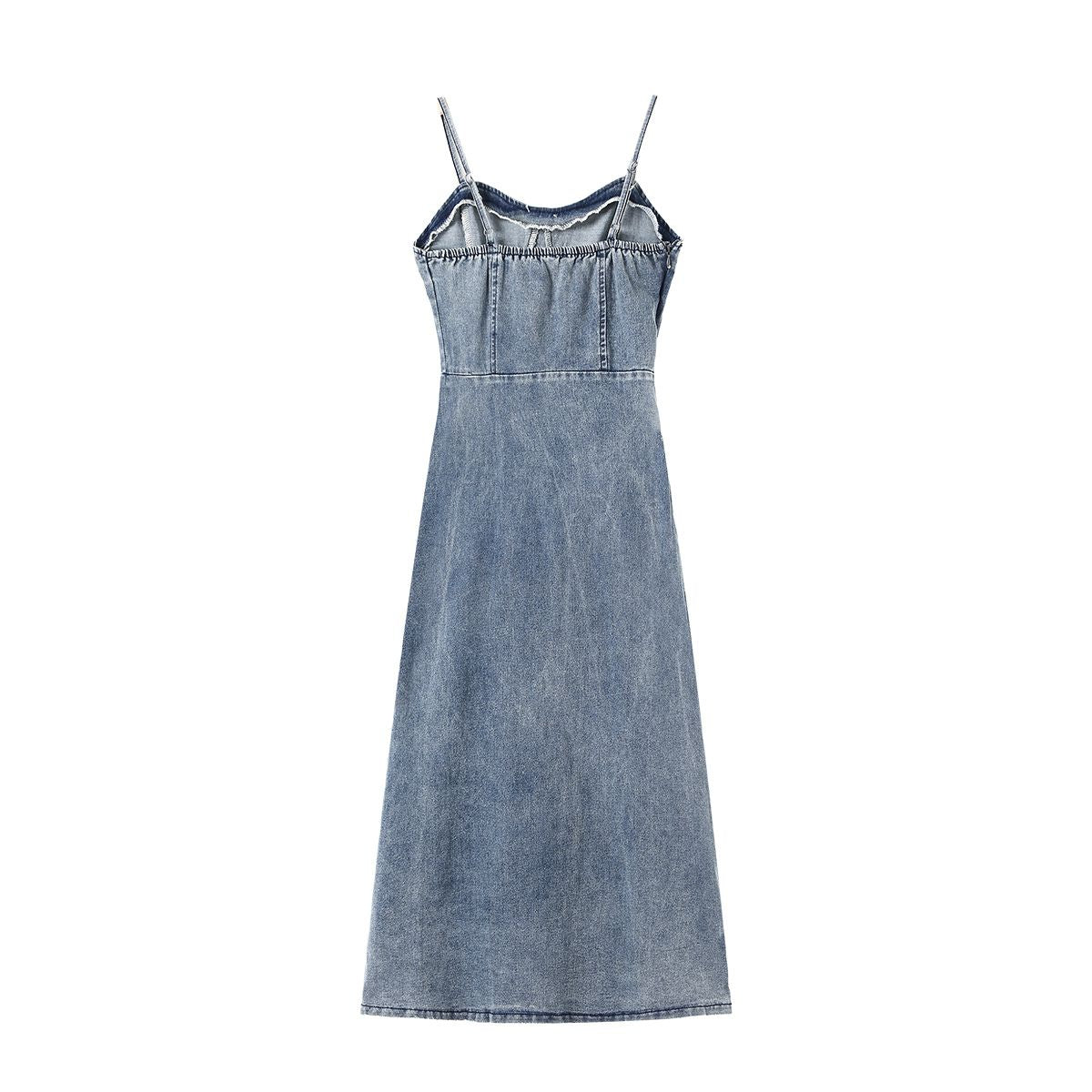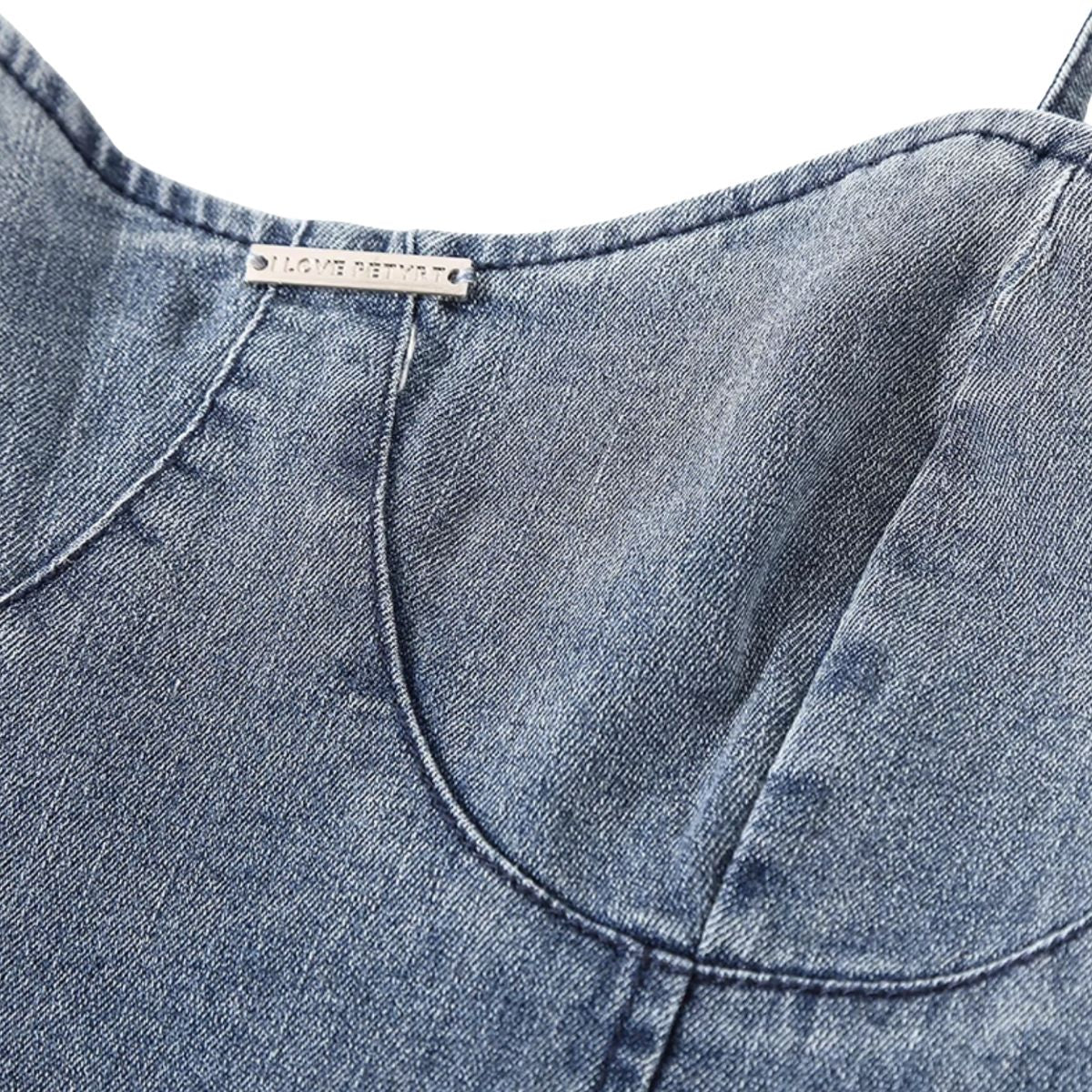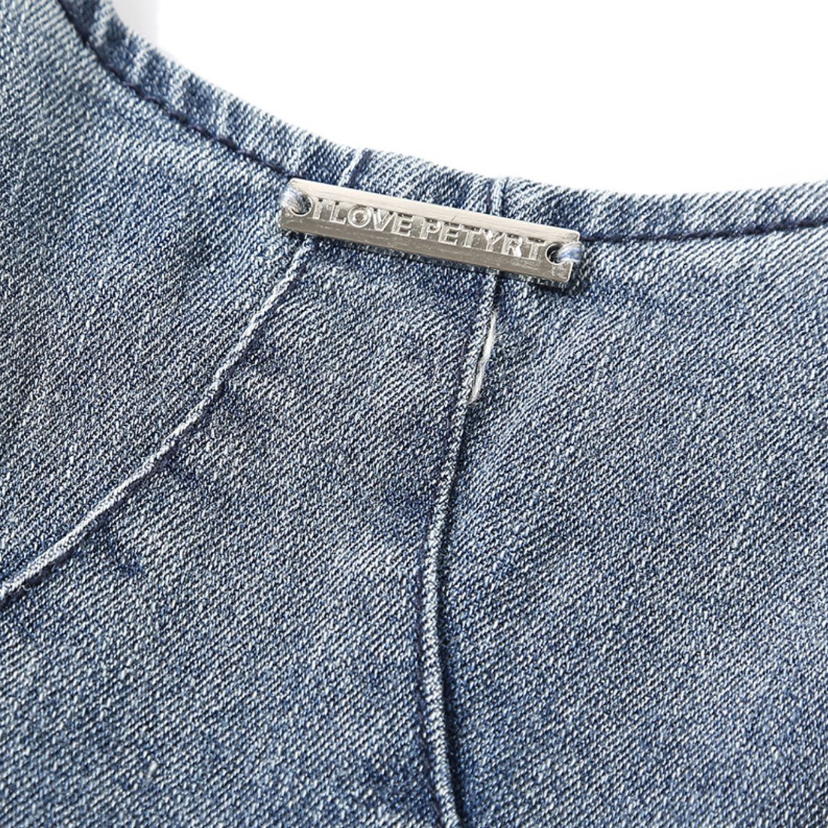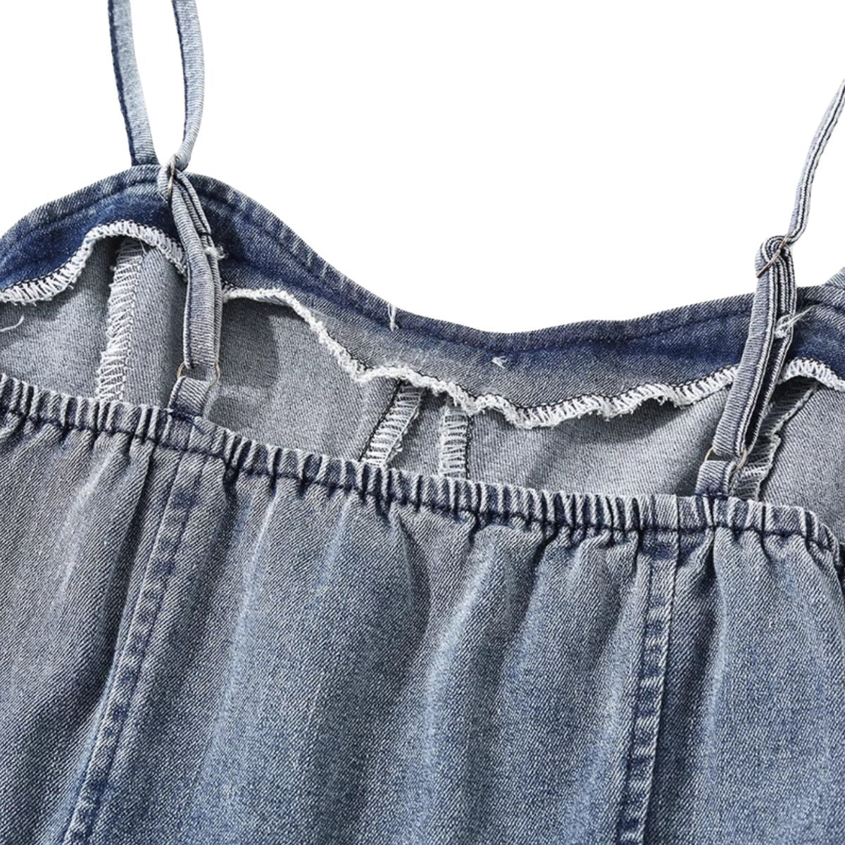 - Bordado artesanal pesado en falda vaquera con bordes sin rematar