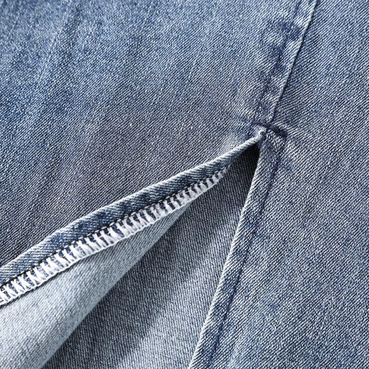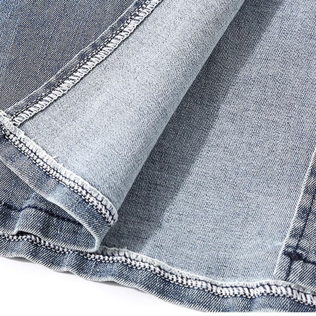 - Diseño de 4 bolsillos con bordado pesado en el bolsillo trasero izquierdo
