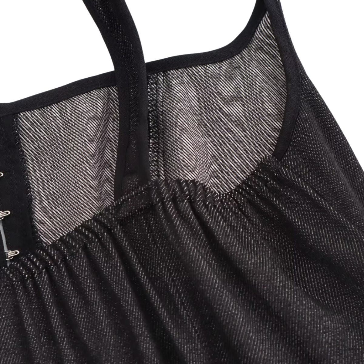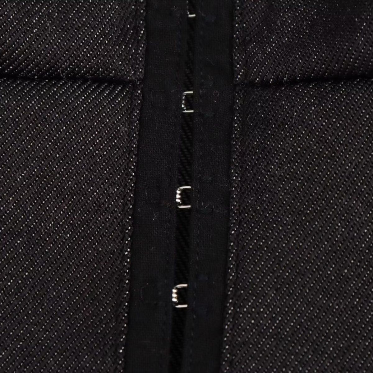 - Bordado artesanal pesado en falda vaquera con bordes sin rematar