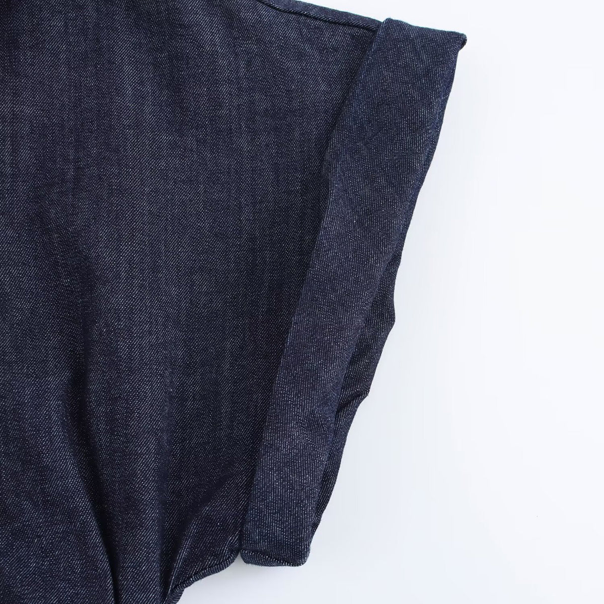 - Vestido camisero vaquero de manga corta - estilo midi relajado + botones