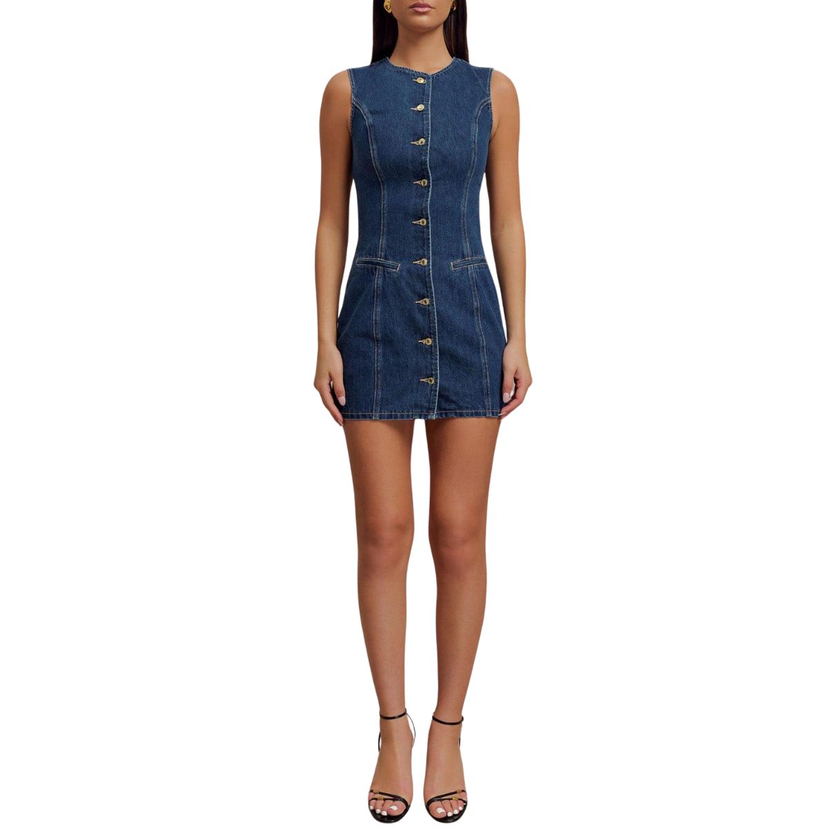 • Minivestido vaquero ajustado | sin mangas + botones en la parte delantera