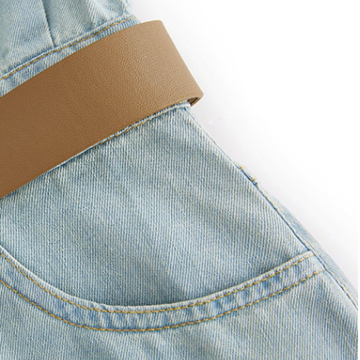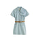- Vestido camisero vaquero de manga corta con cinturón anudado
