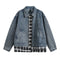Men's Retro Plaid Patchwork Fake Two-piece Denim Jacket