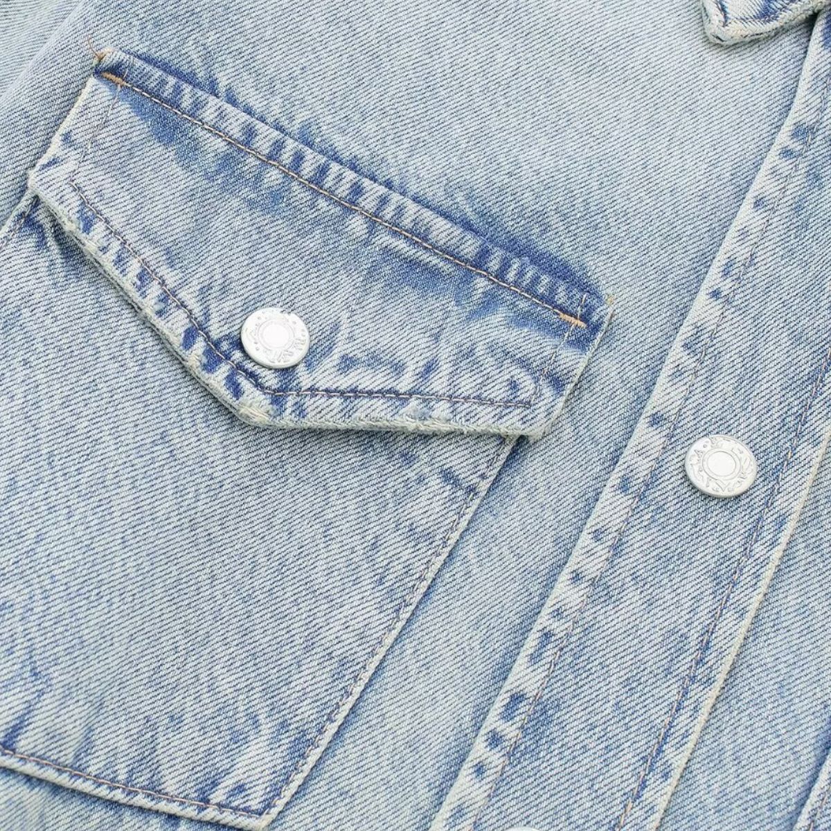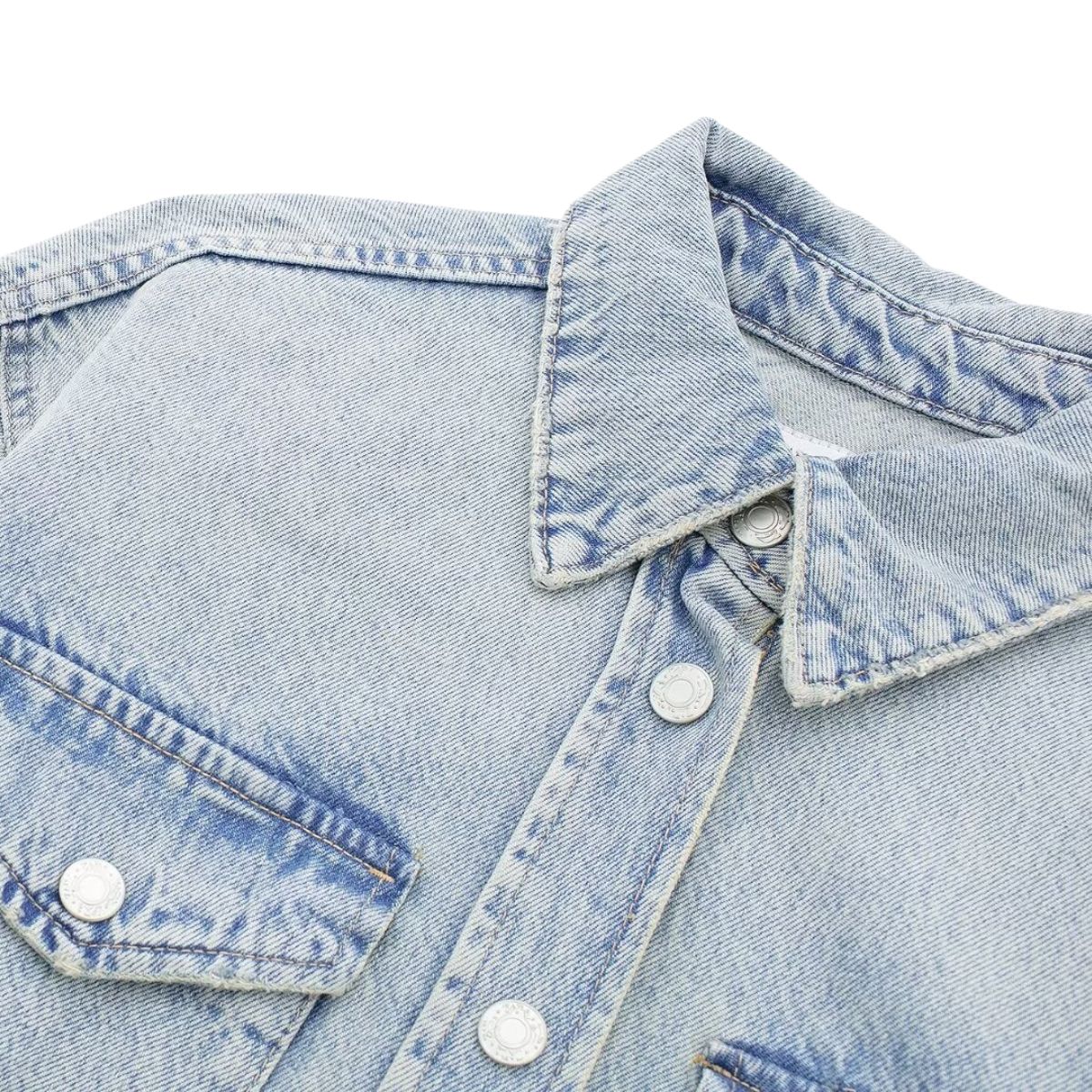 - Vestido midi de mezclilla sin mangas con aberturas y botones en la parte delantera