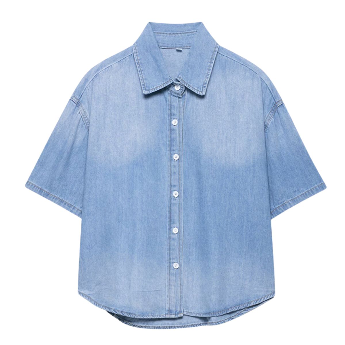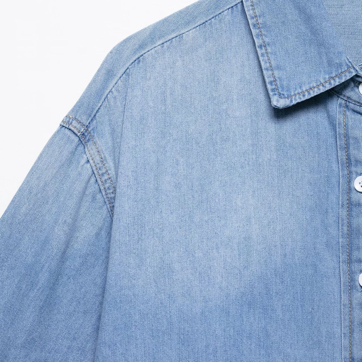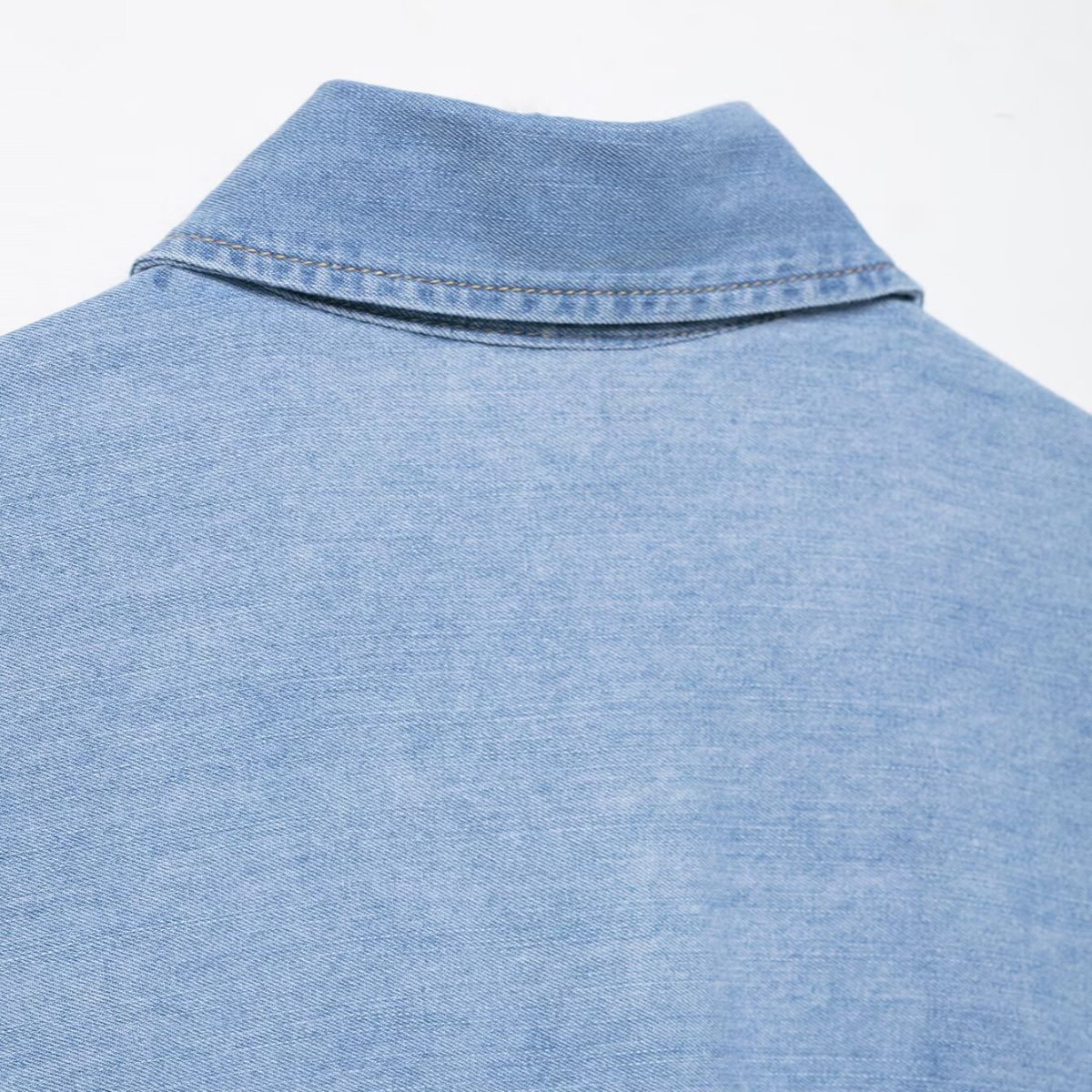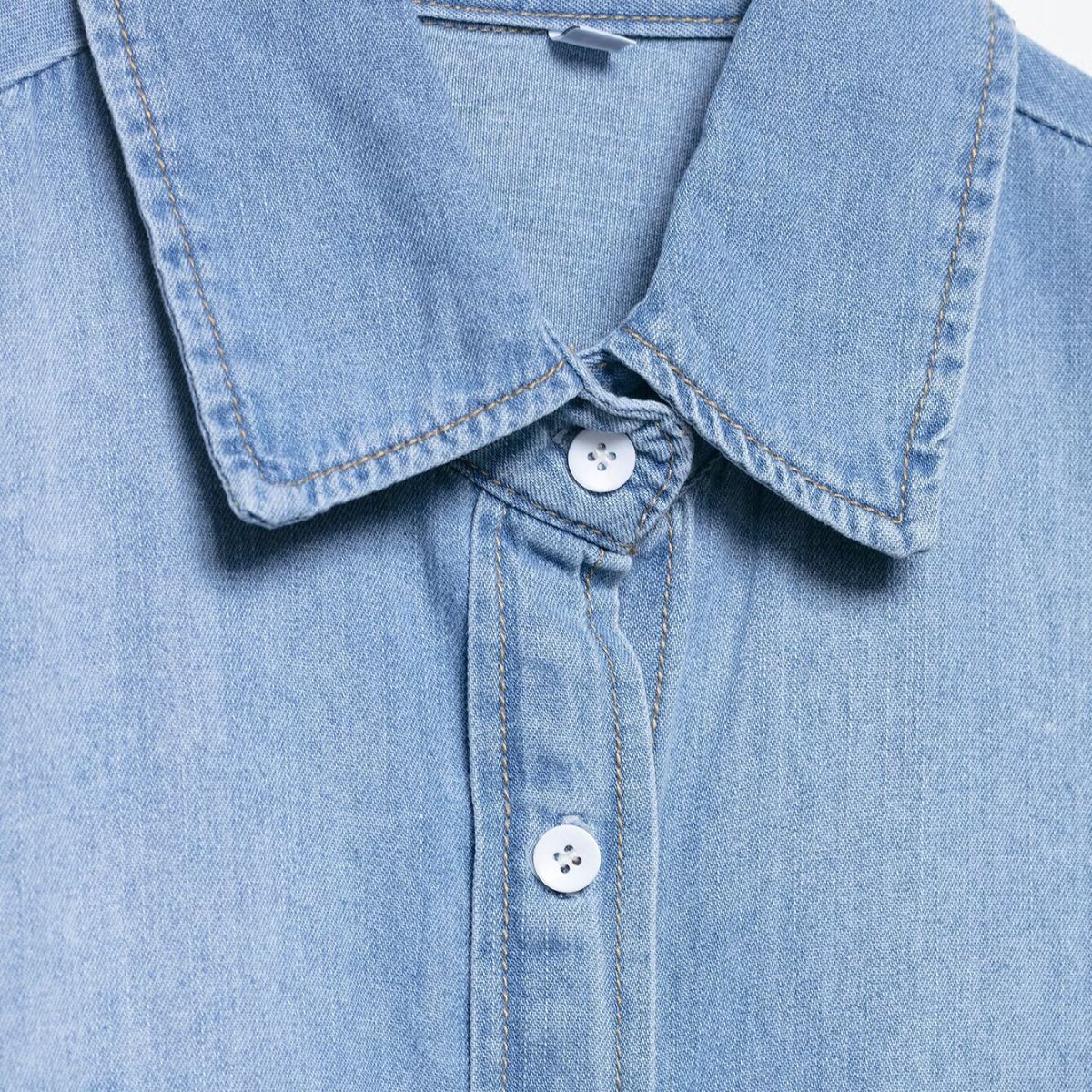 - Vestido midi de mezclilla sin mangas con aberturas y botones en la parte delantera