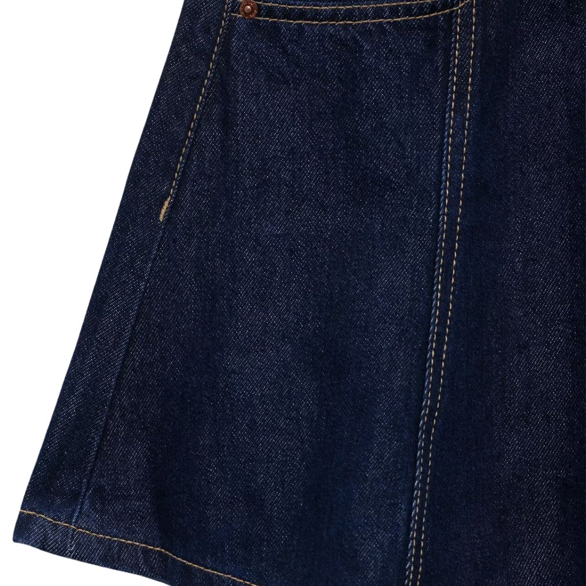 - Bordado artesanal pesado en falda vaquera con bordes sin rematar