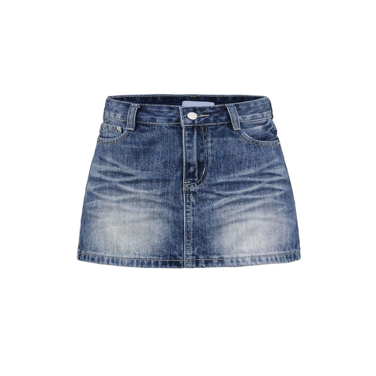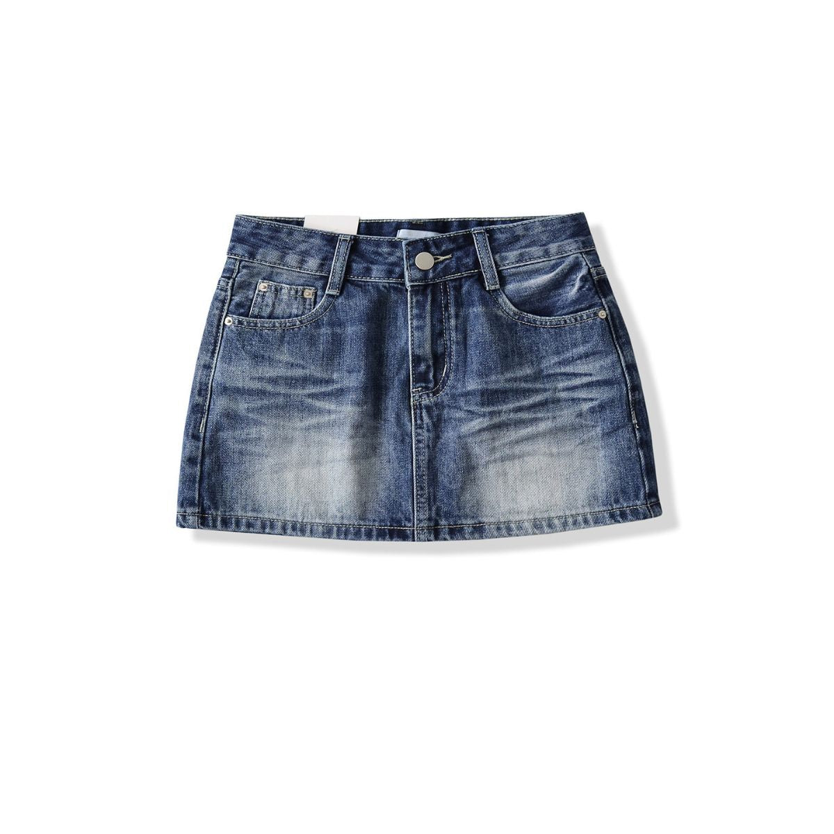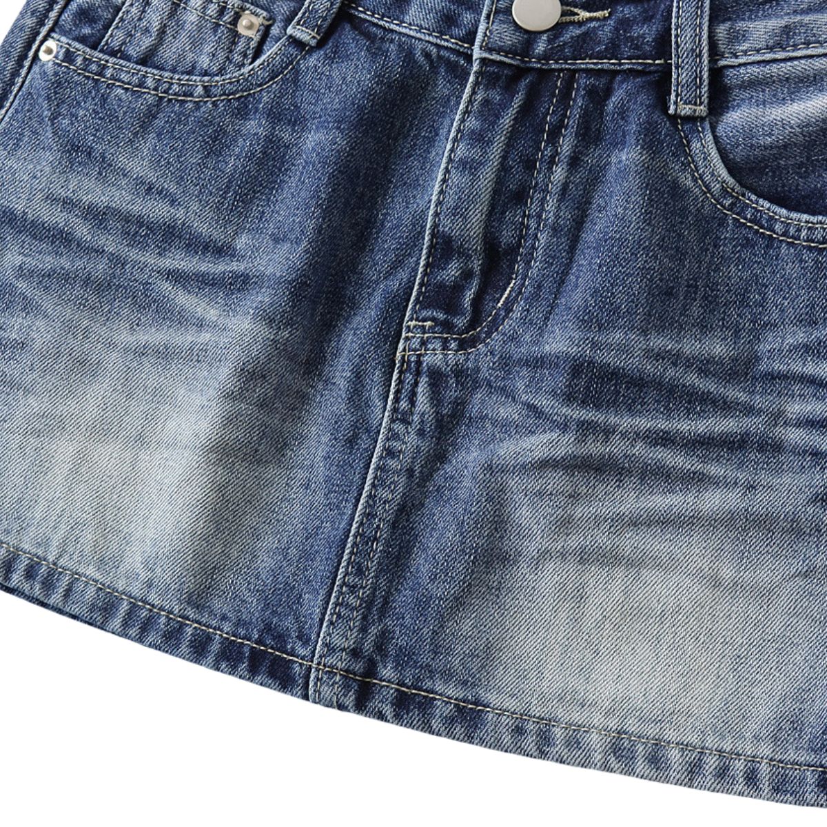 - Bordado artesanal pesado en falda vaquera con bordes sin rematar