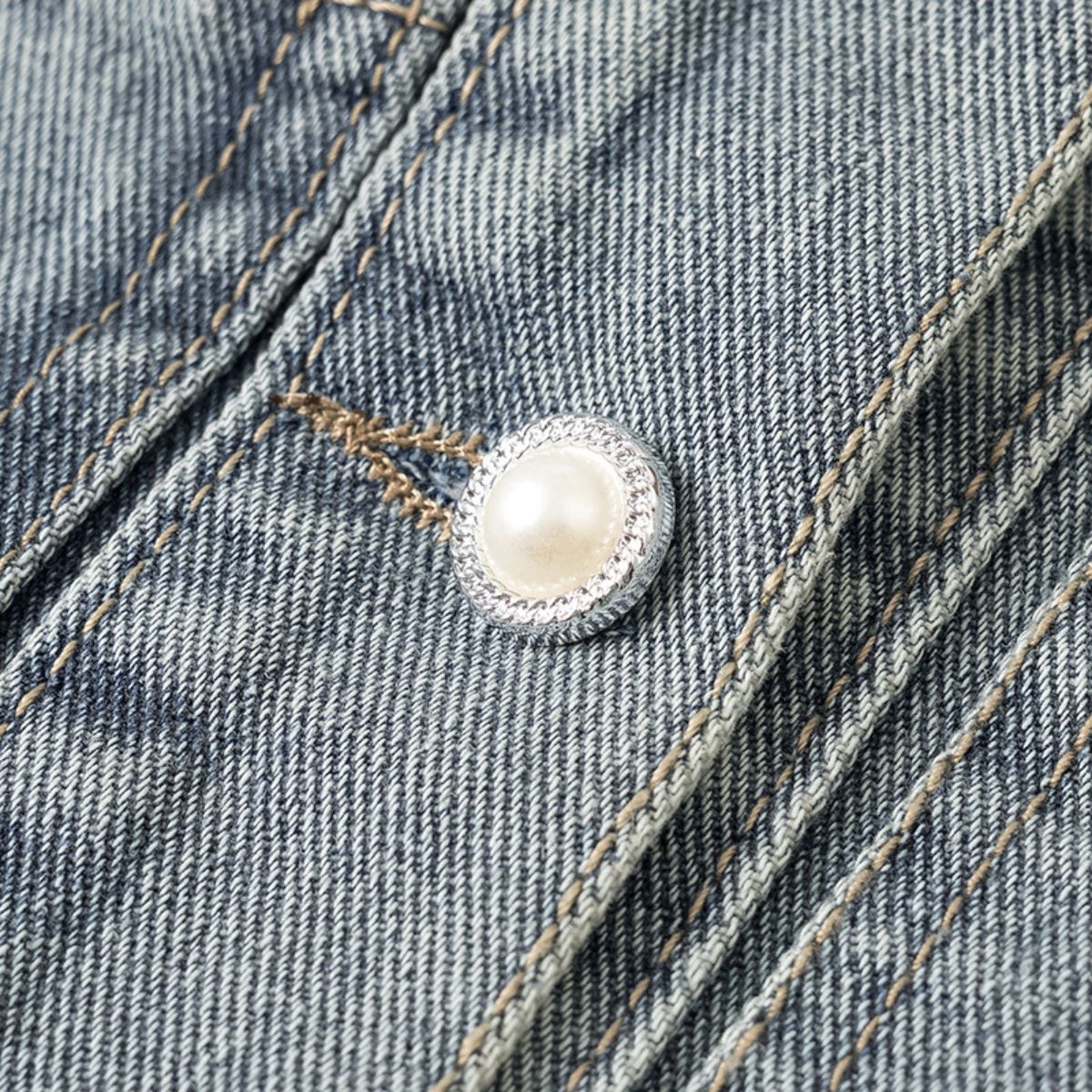 - Cinco bolsillos clásicos, ribete de bolsillo delantero con cuentas de perlas