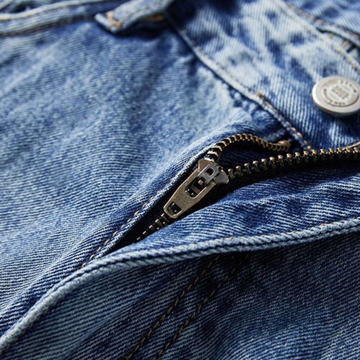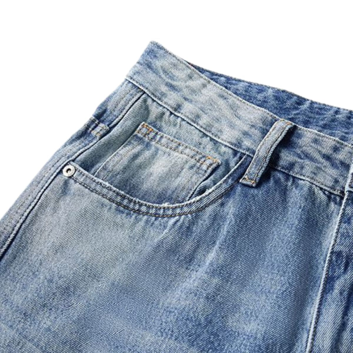 - Vaqueros rectos lavados vintage: dobladillo desgastado y rotos artesanales