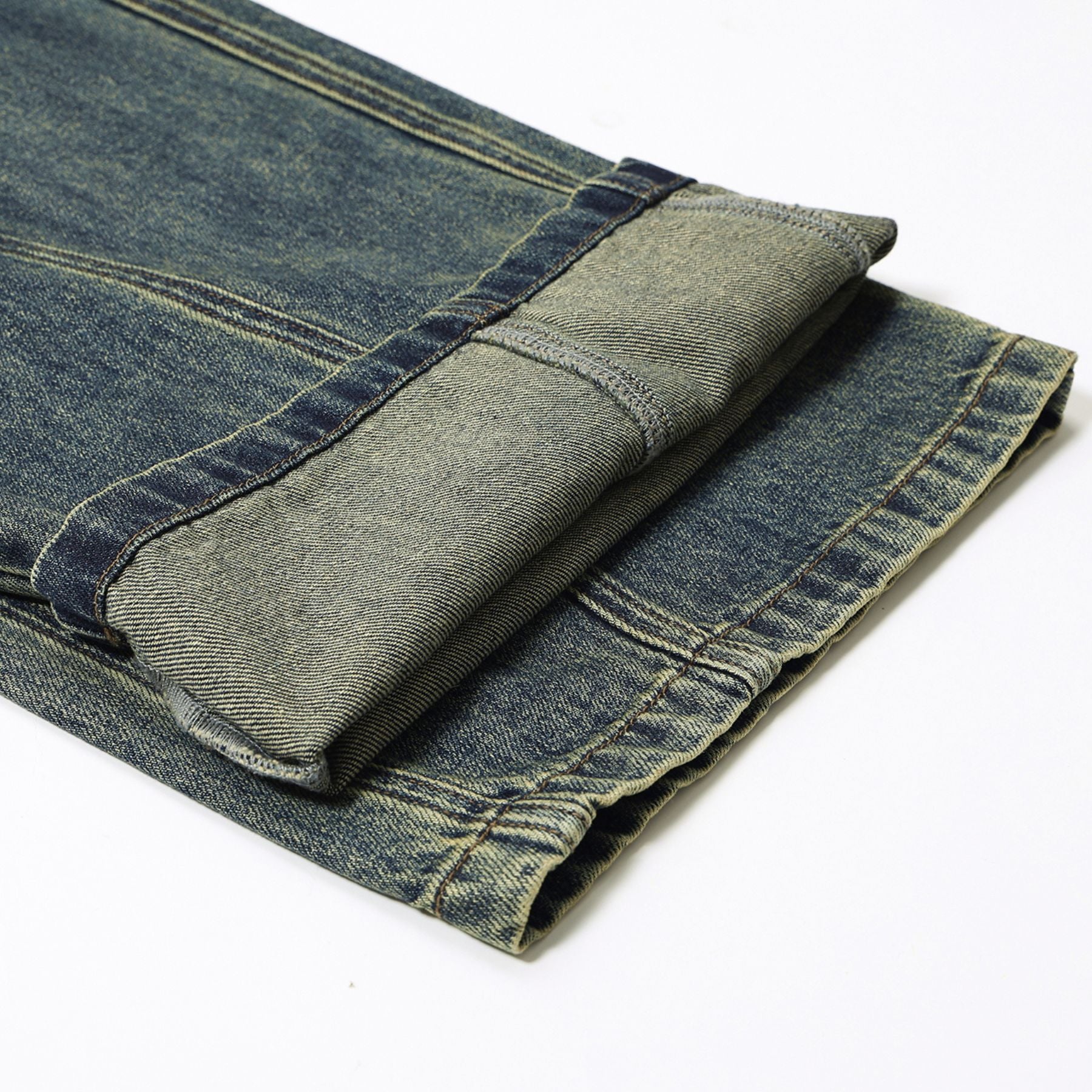 • Vaqueros de pierna ancha con dos bolsillos cargo inclinados, lavado pesado