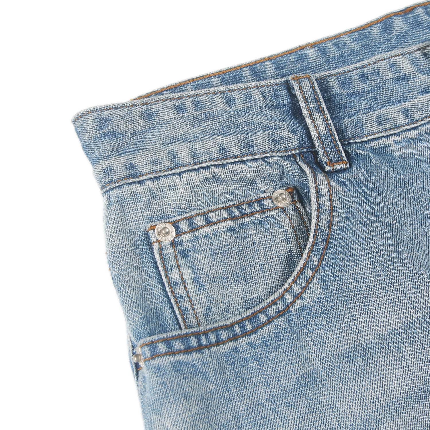 - Vaqueros de pierna recta en denim deslavado de lavado medio
