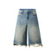 Vaqueros cropped de pierna ancha con dobladillo sin rematar y rotos
