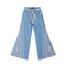 - Vaqueros ligeros de estilo bohemio con bordados, bajo sin rematar y vuelo de los años 70