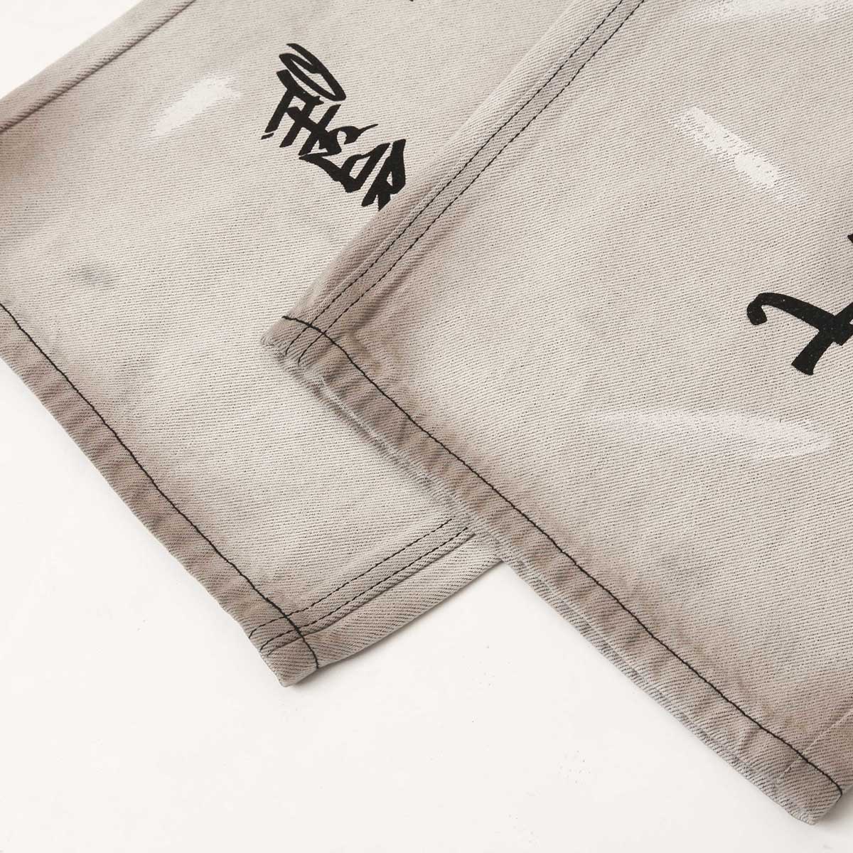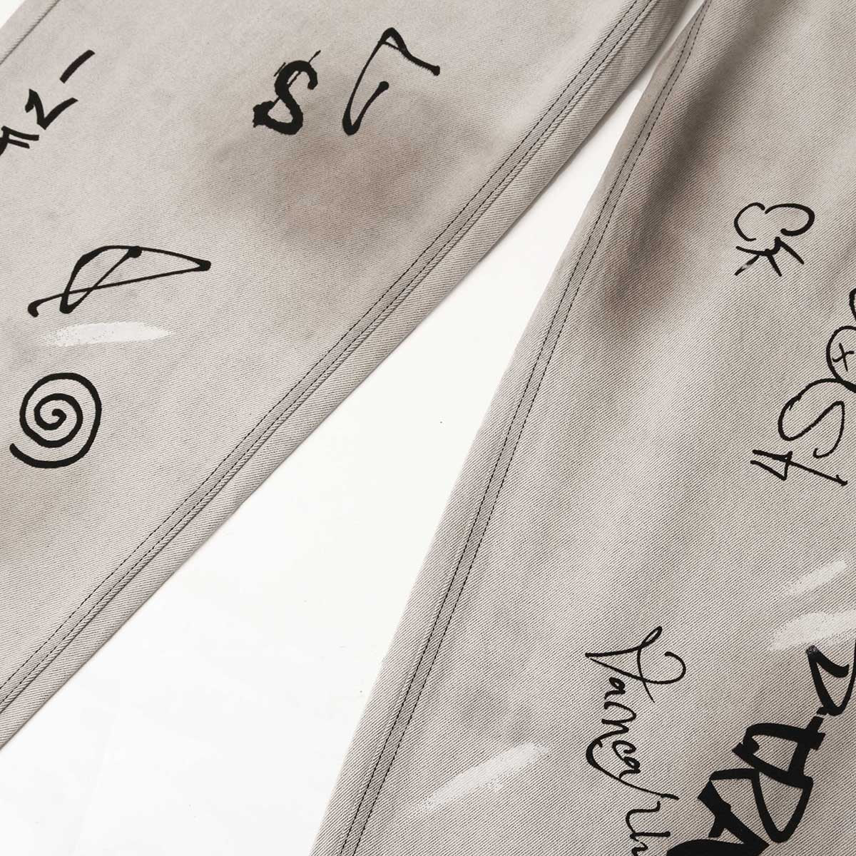 Graffiti Print Washed Wide-Leg Jeans