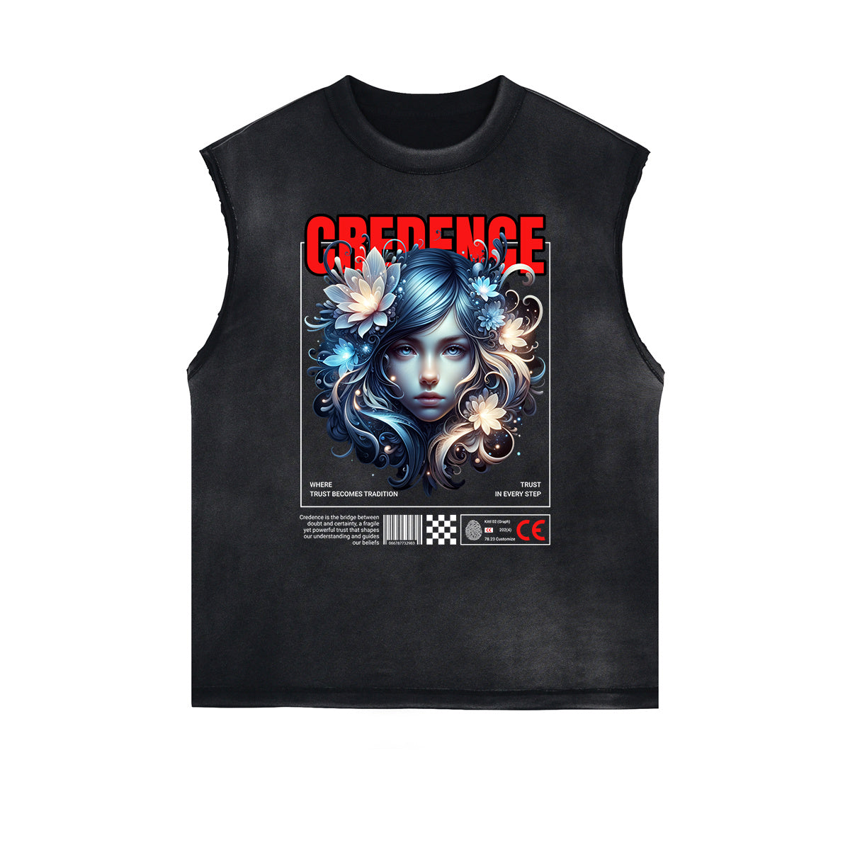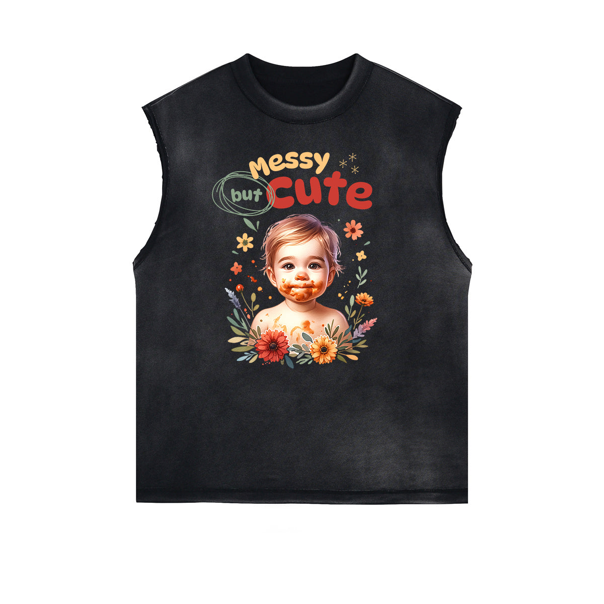 - Camiseta descolorida sin mangas, estilo con borde deshilachado