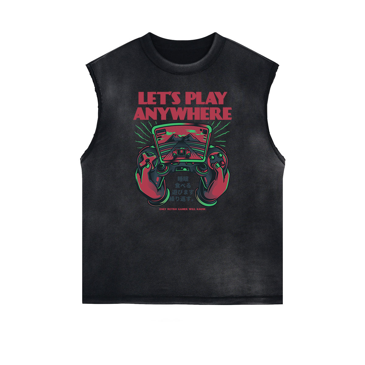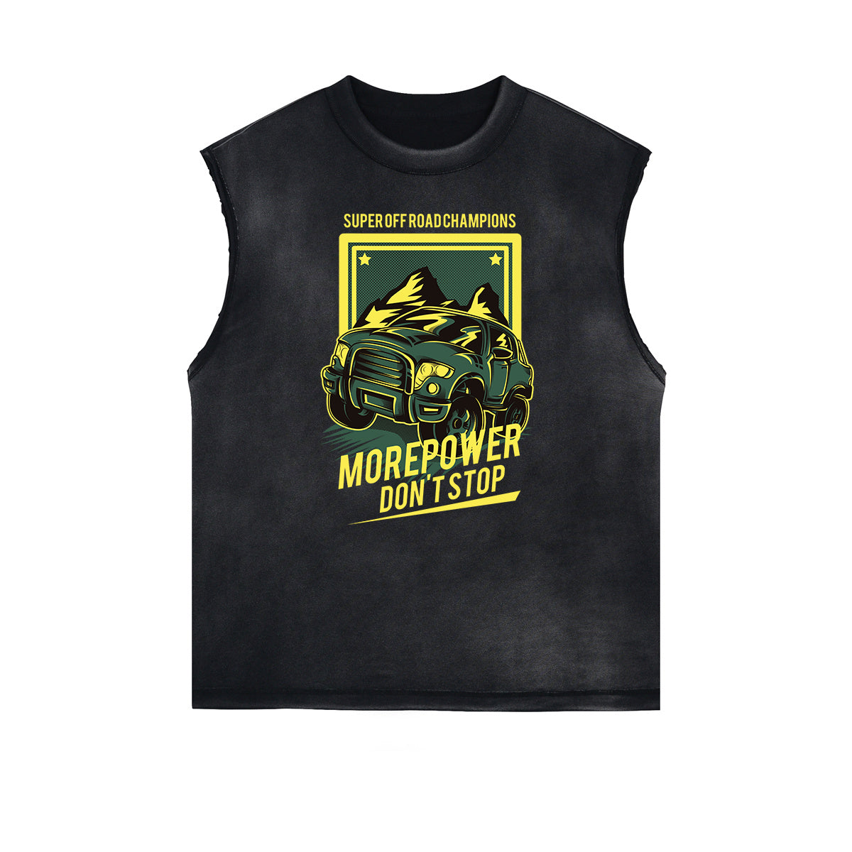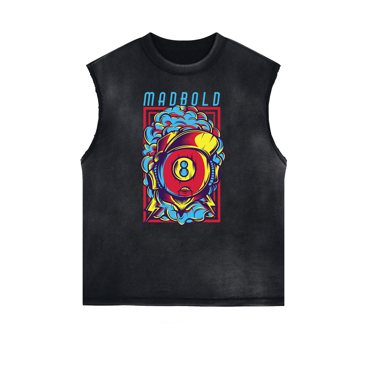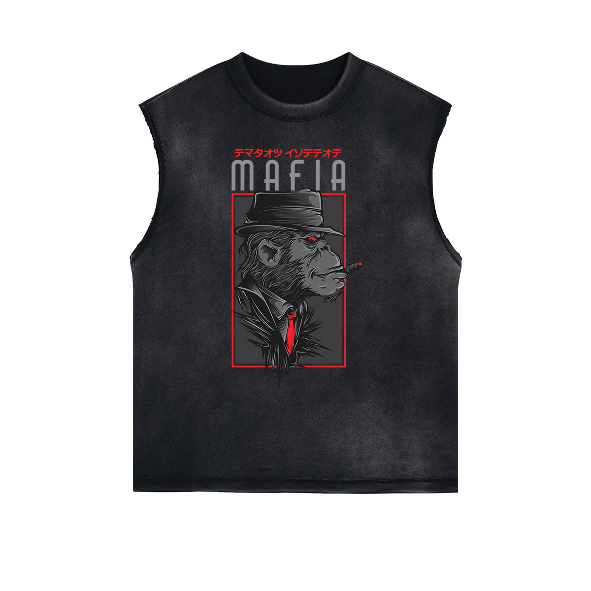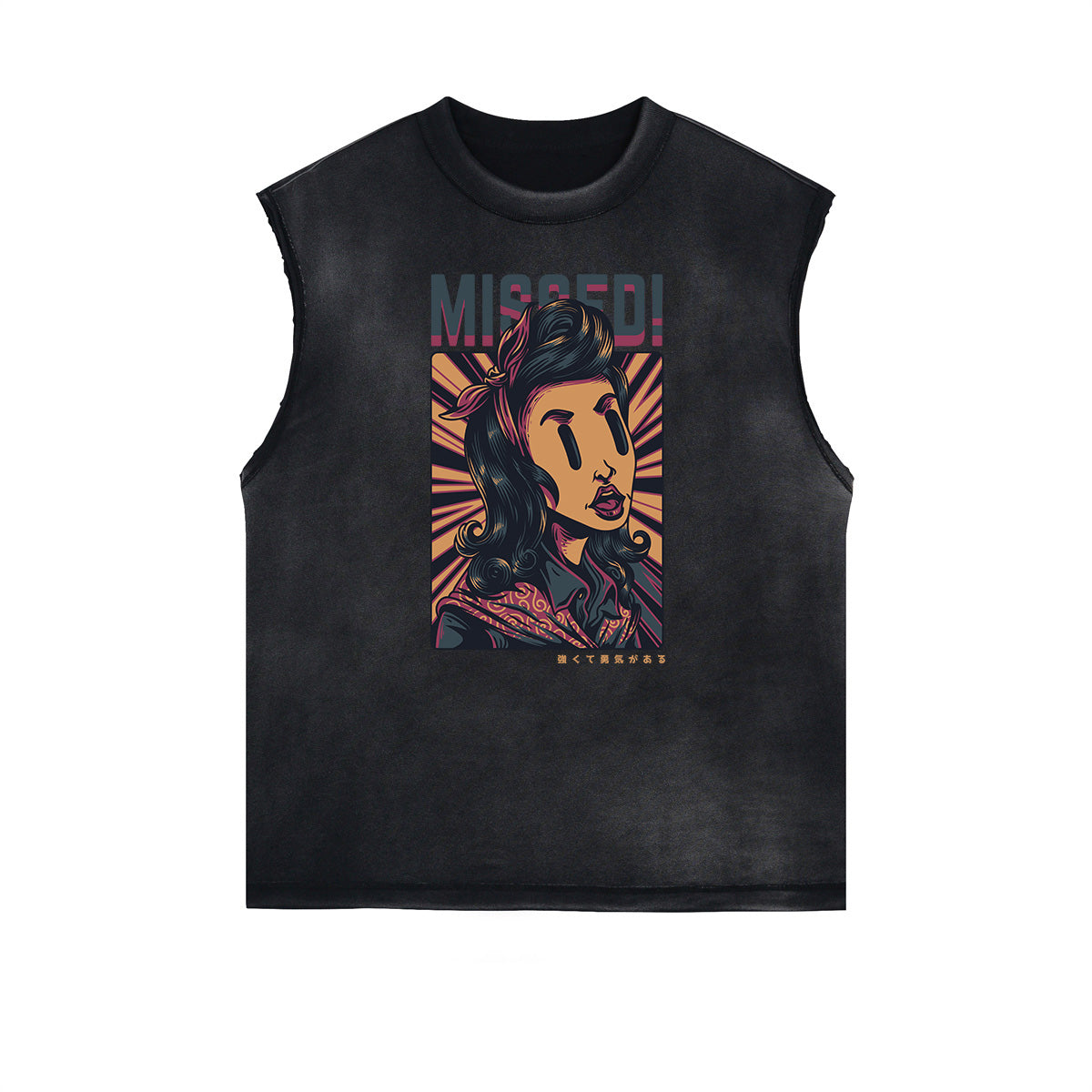 - Camiseta descolorida sin mangas, estilo con borde deshilachado