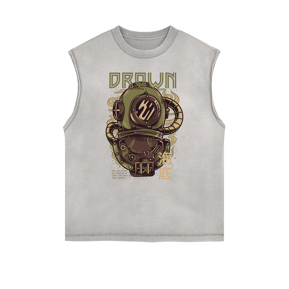 • Camiseta descolorida sin mangas, estilo con borde deshilachado