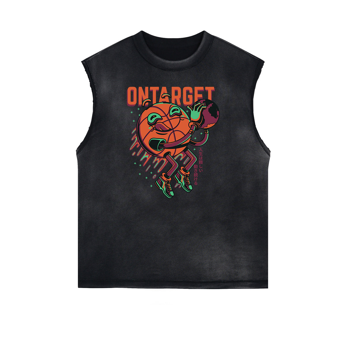 - Camiseta descolorida sin mangas, estilo con borde deshilachado