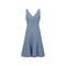 - Women's light wash denim A-line dress with V-neck