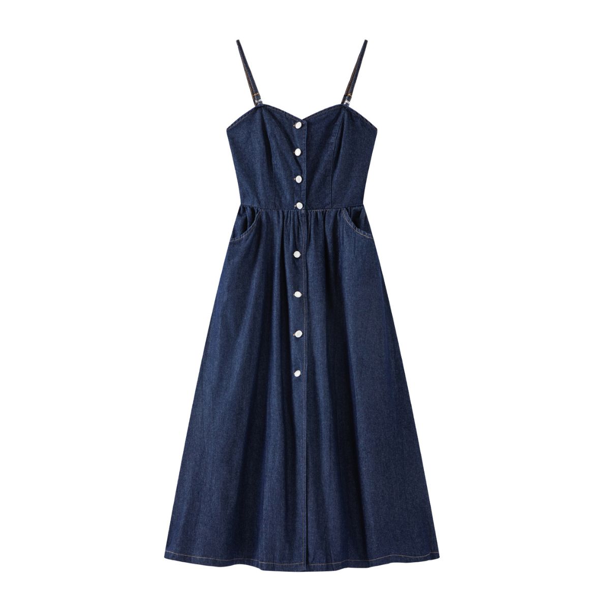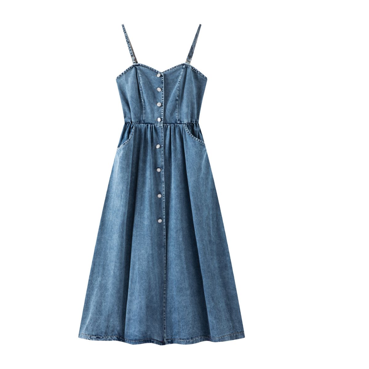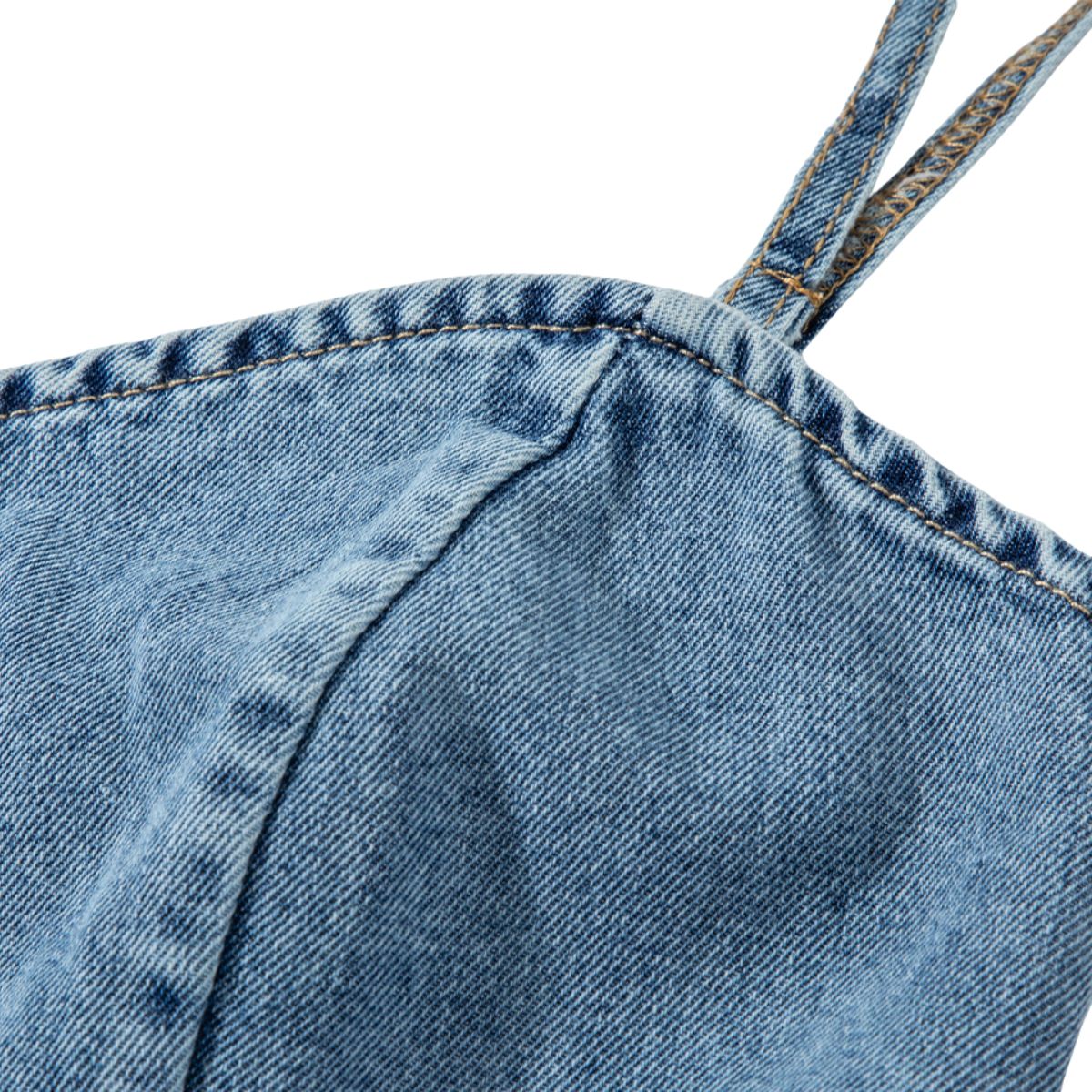 - Bordado artesanal pesado en falda vaquera con bordes sin rematar