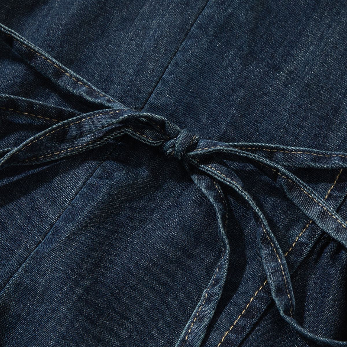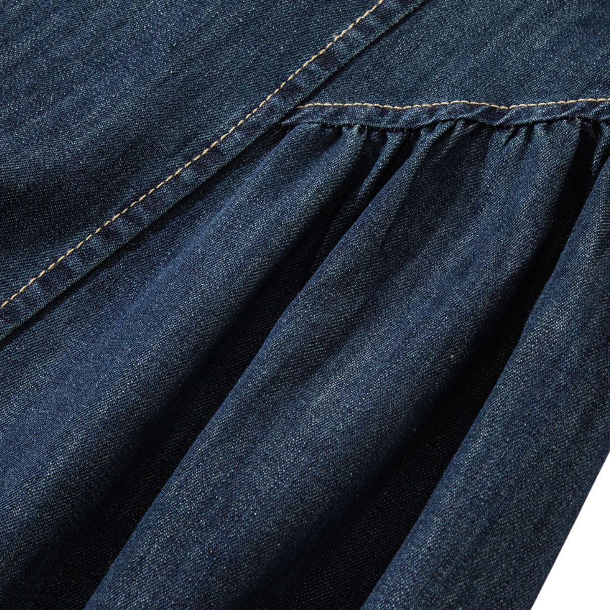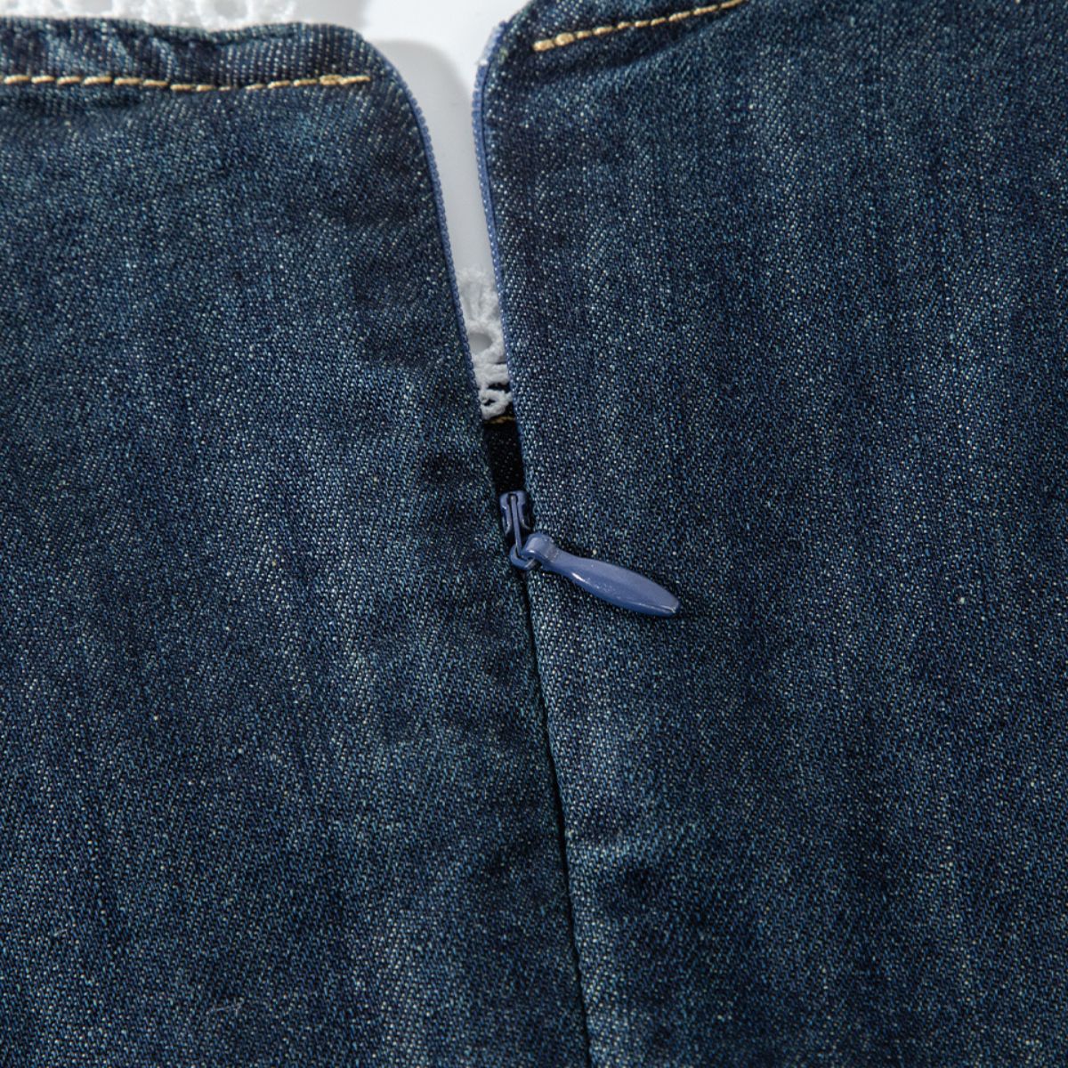 • Bordado artesanal pesado en falda vaquera con bordes sin rematar