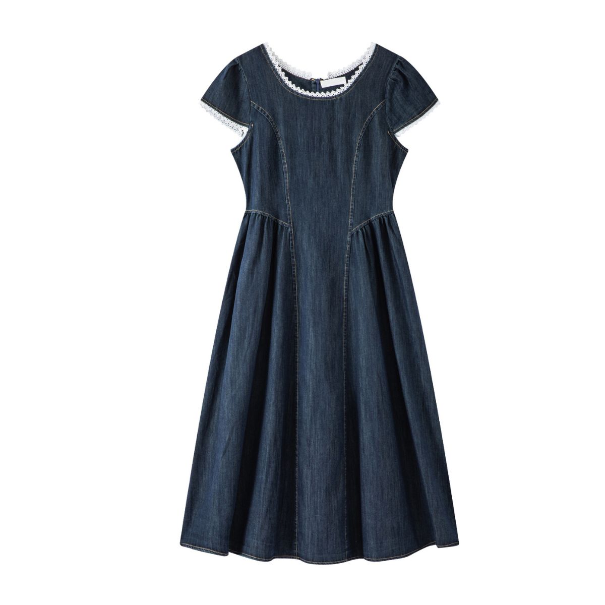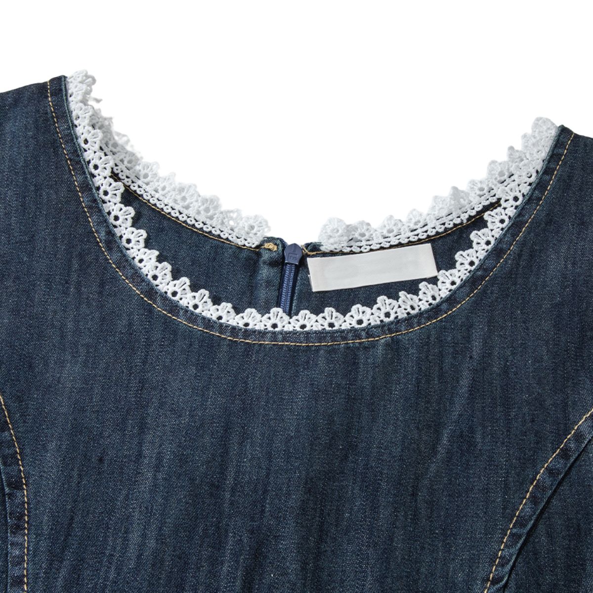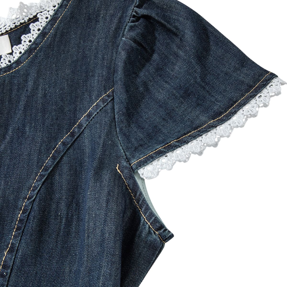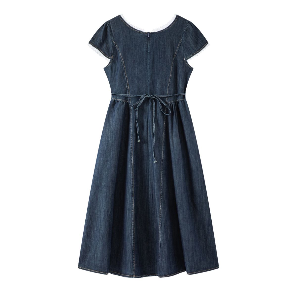 • Bordado artesanal pesado en falda vaquera con bordes sin rematar