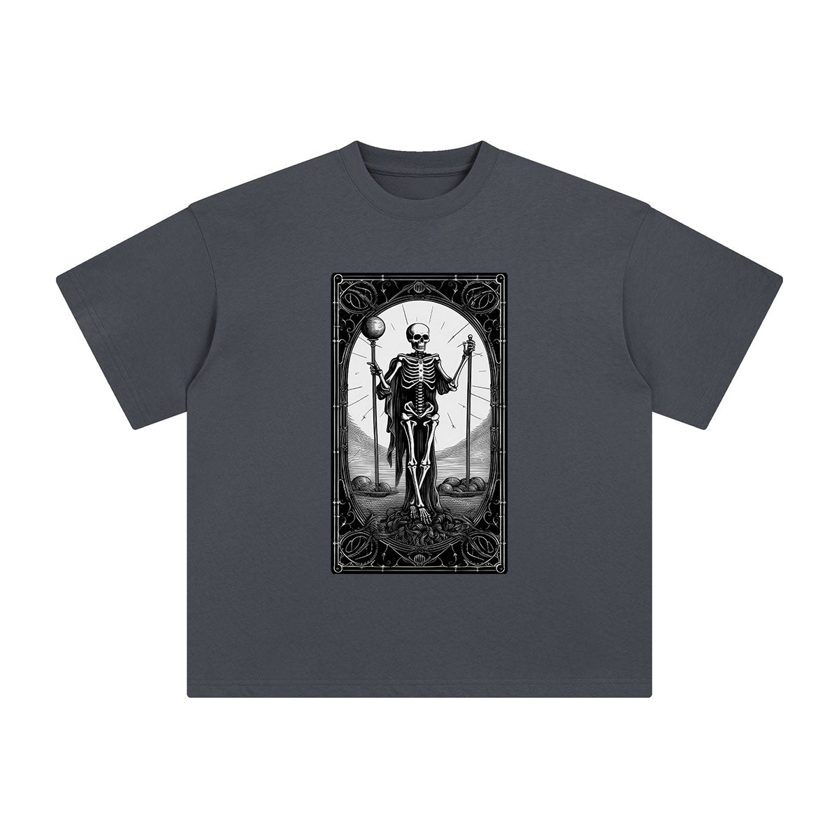 Camiseta gráfica con la carta del tarot del esqueleto misterioso