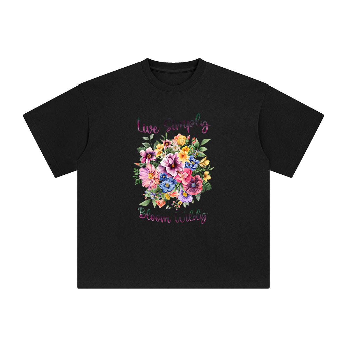Camiseta gráfica "Vive simplemente, florece salvajemente"