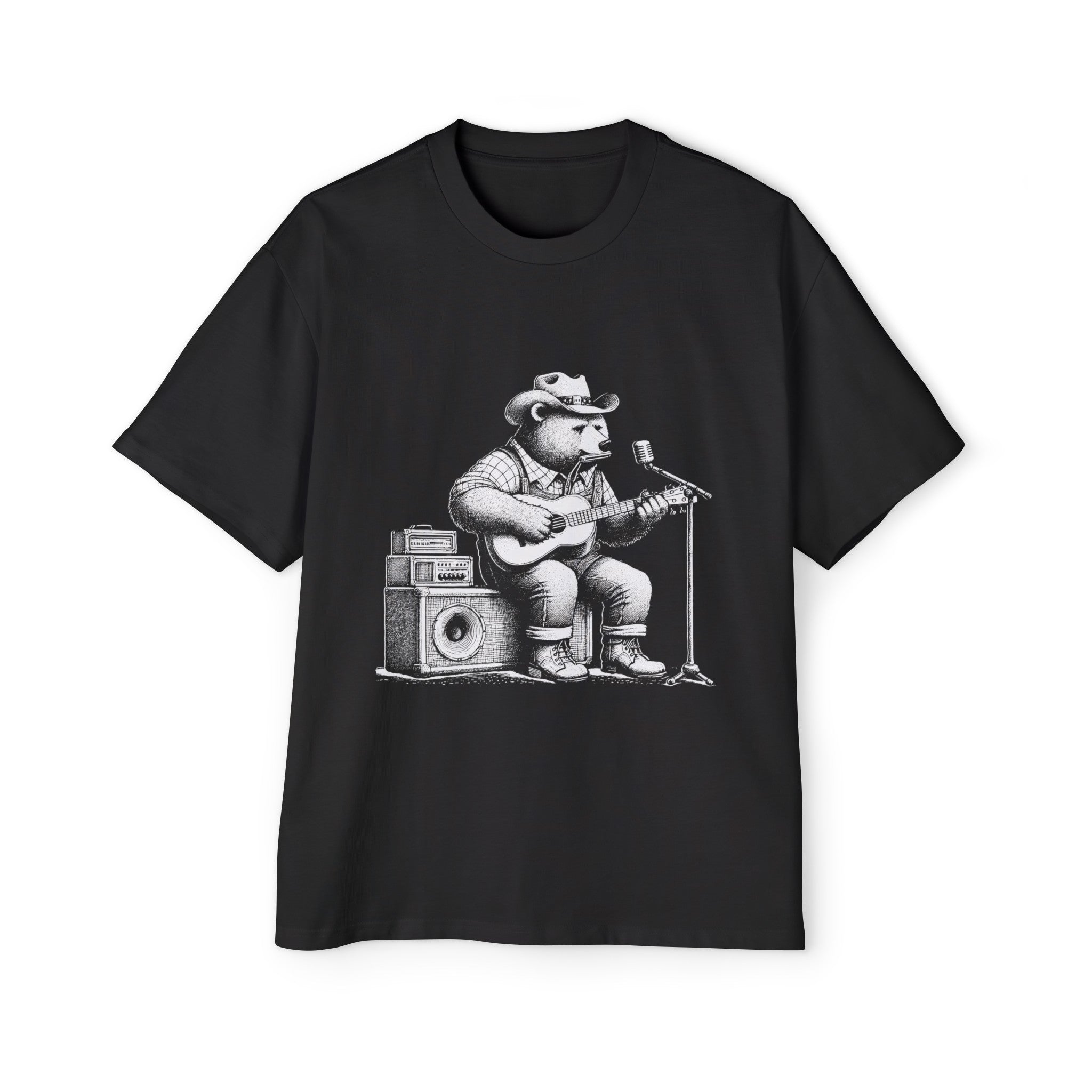Camiseta gráfica retro de oso tocando la guitarra