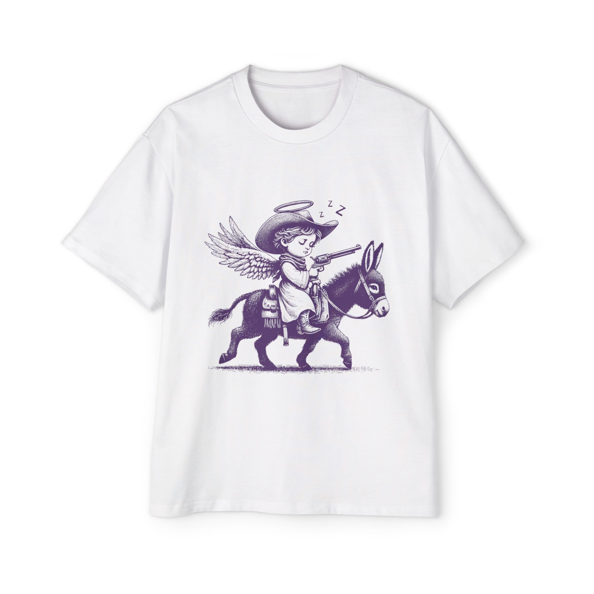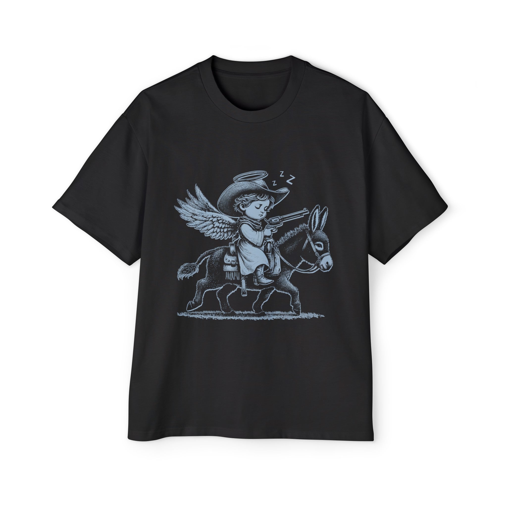 Little Cowboy Angel Sleepy on Donkey Graphic Tee-INNBLAC Fashion Apparel