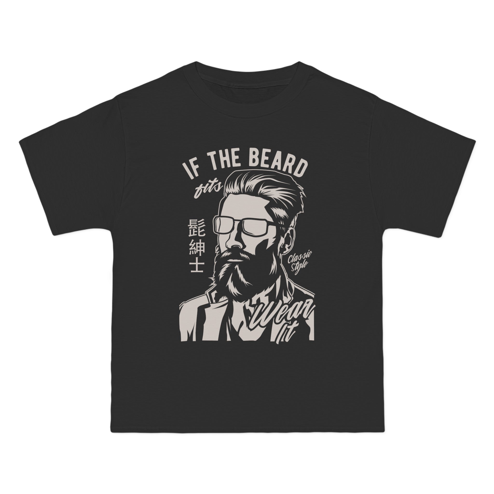 Camiseta gráfica con caracteres chinos de caballero barbudo