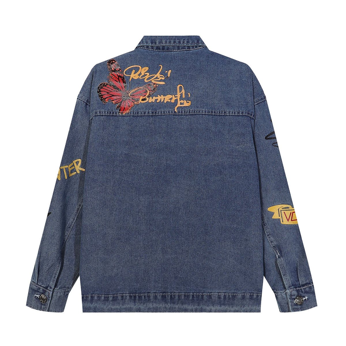 - Shorts vaqueros con mariposas bordadas con lentejuelas y detalles de perlas