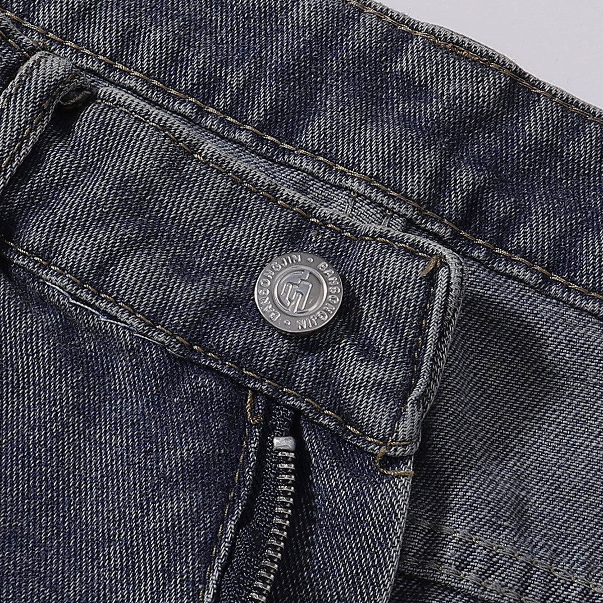 • Classic zip fly with button fastening
