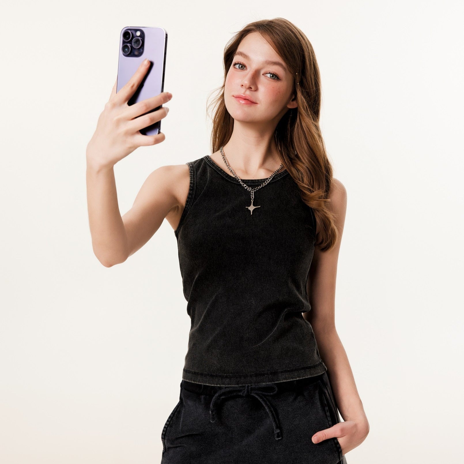 Camiseta sin mangas lavada y descolorida para mujer de 9.5 oz