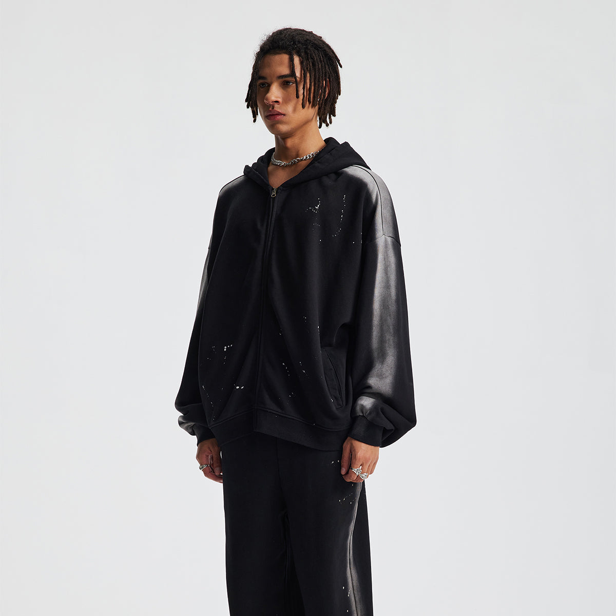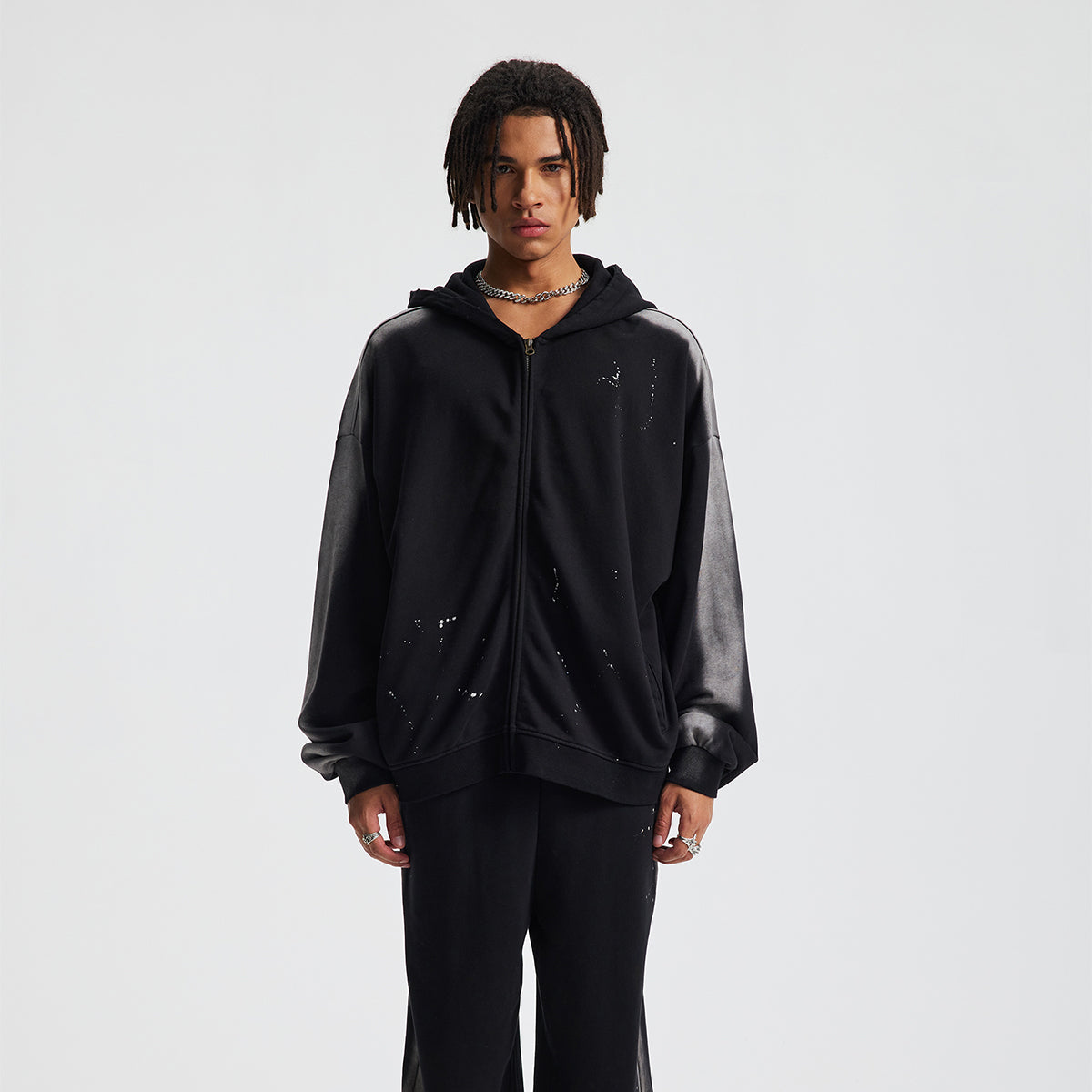 Distressed Paint Splatter Zippered Hoodie